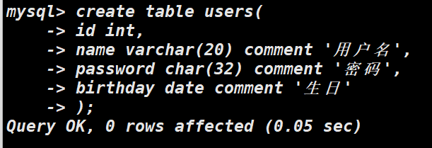 tip:创建表首先得选择库进入