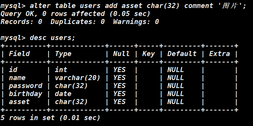 若我们想给表中添加新的字段