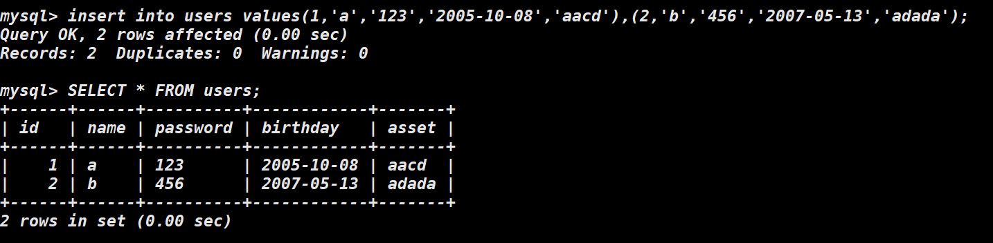 这里我们插入两条样例