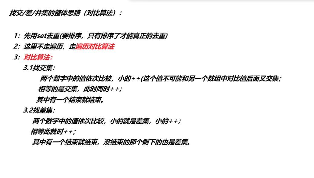 两个数组中找****交/差/并集的整体思路( 对比算法)****:
