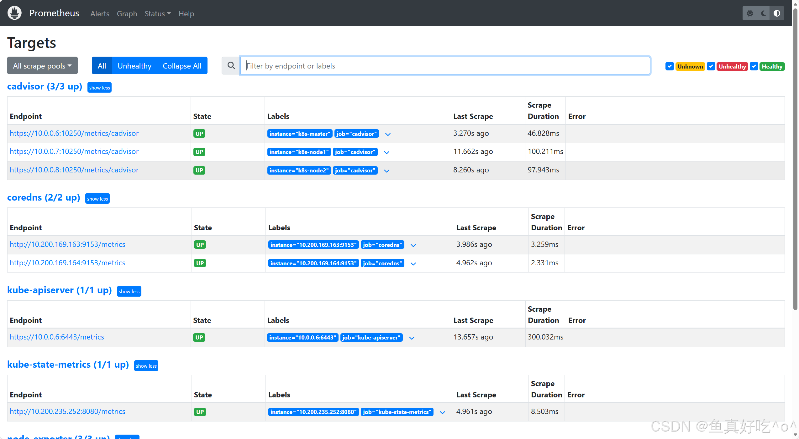 service/node-exporter ClusterIP None <none> 9100/TCP 15h