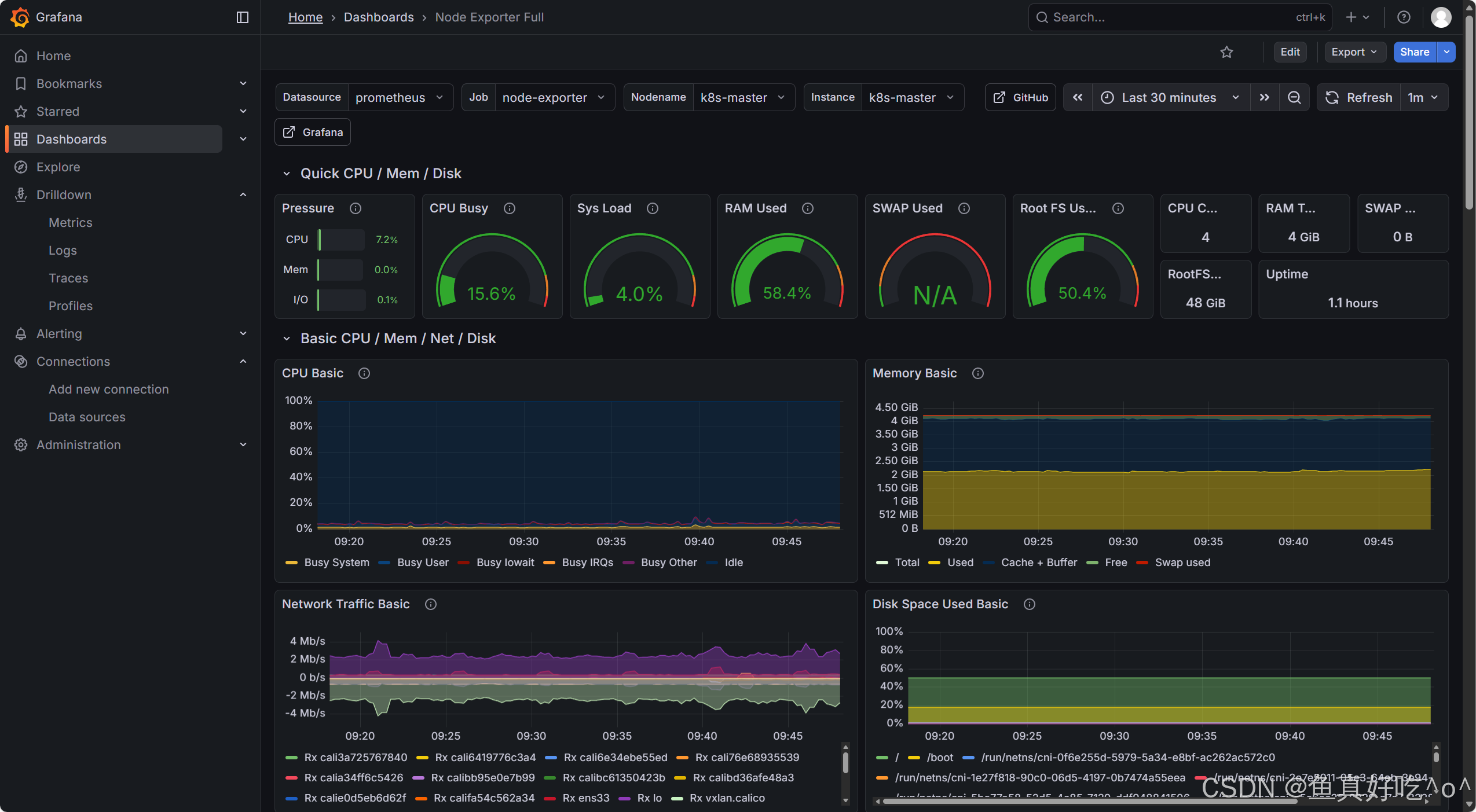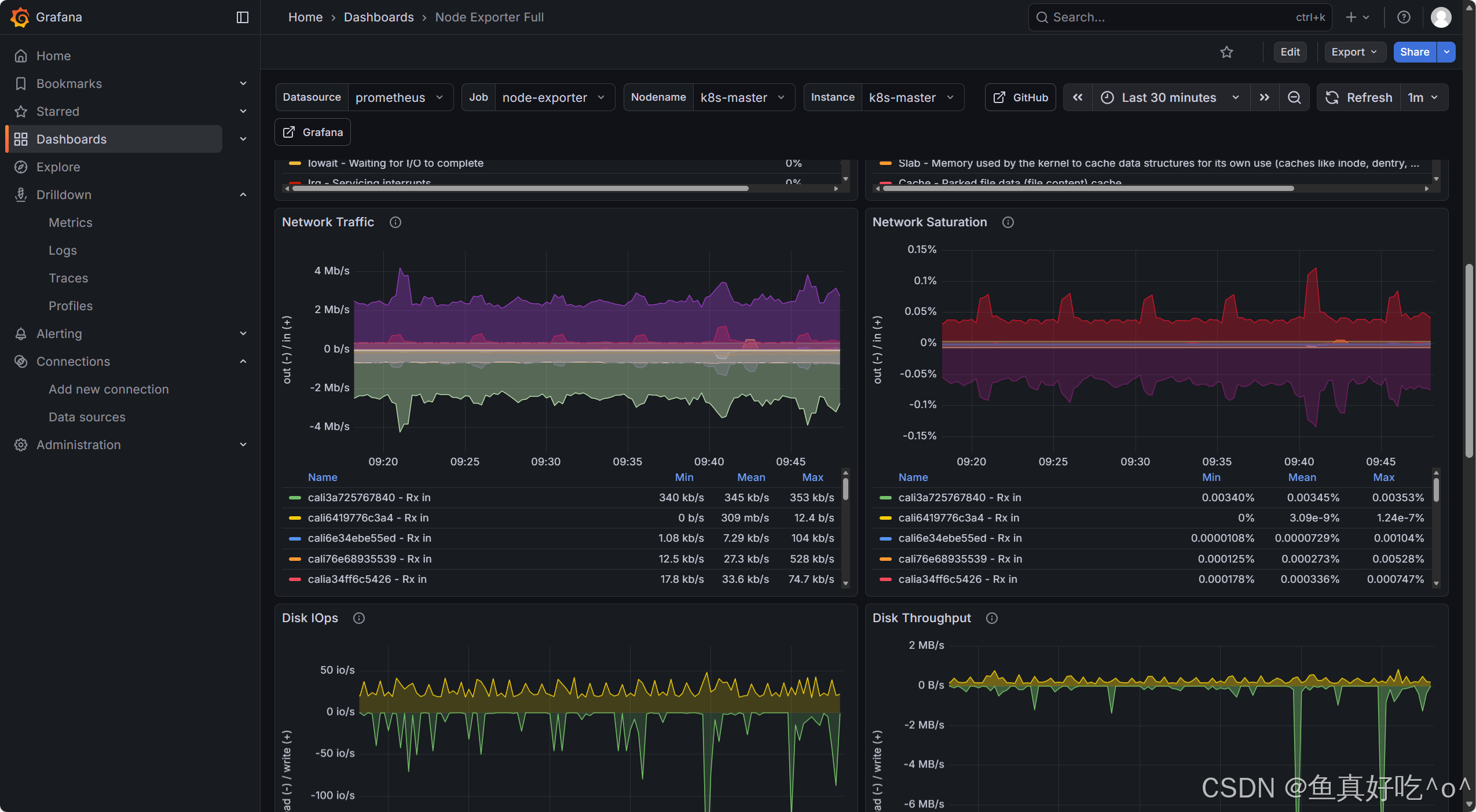node_exporter就是抓取用于采集服务器节点的各种运行指标,目前node_exporter支持几乎所有常见的监控点,比如 conntrack, cpu, diskstats, filesystem, loadavg, meminfo, netstat等,详细的监控点列表可以参考其https://github.com/prometheus/node_exporter