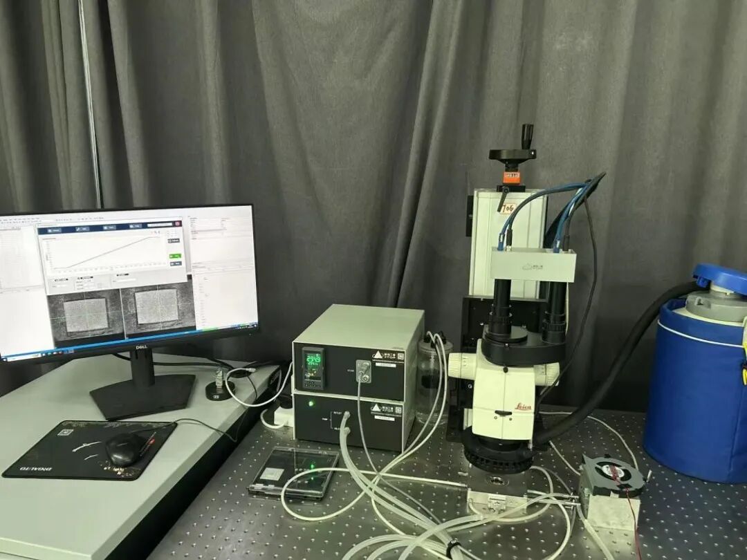 光学冷热台(温度范围:-190~600℃,可定制),与光学显微DIC系统搭配集成,进行变温原位测试。