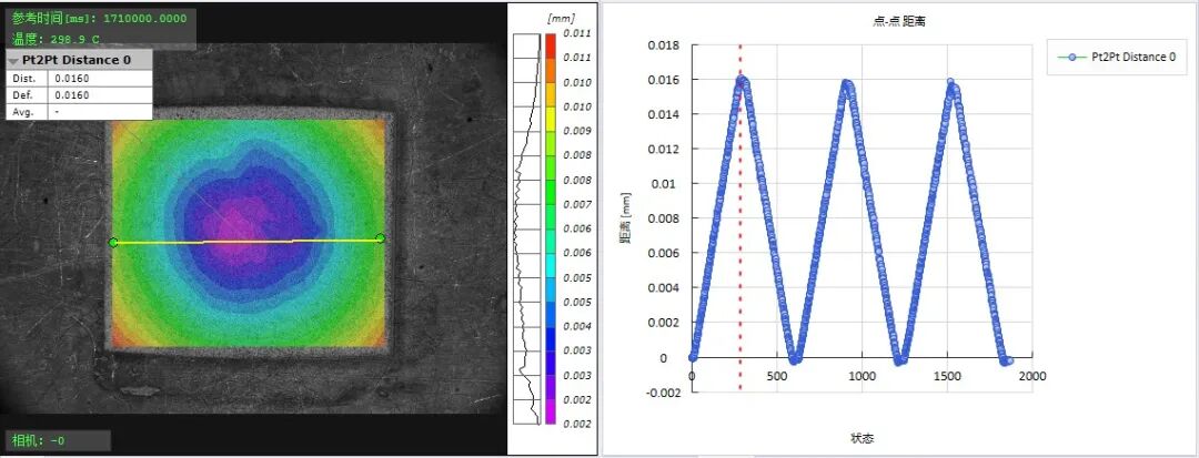 分析两点之间的距离变化,并可获取两点之间的变形间距变化: