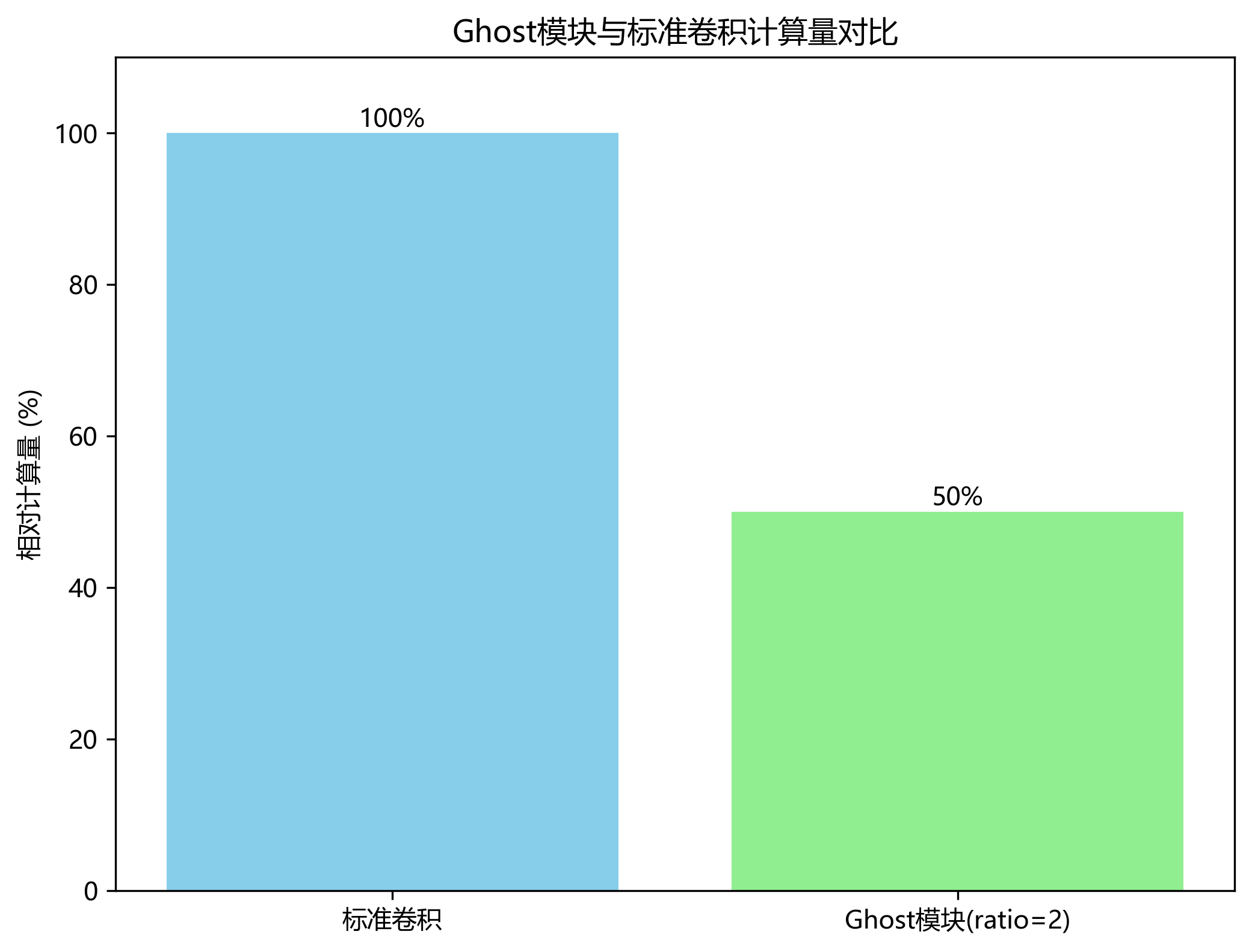 该代码实现了一个基本的Ghost模块,其中ratio参数控制生成的特征图数量比例。通过这种方式,我们可以在保持模型性能的同时,显著减少计算量和参数量。在柑橘病害检测任务中,我们使用了ratio=2的配置,即在标准卷积生成一半特征图后,通过深度可分离卷积生成另一半特征图,这样可以将计算量减少约50%。