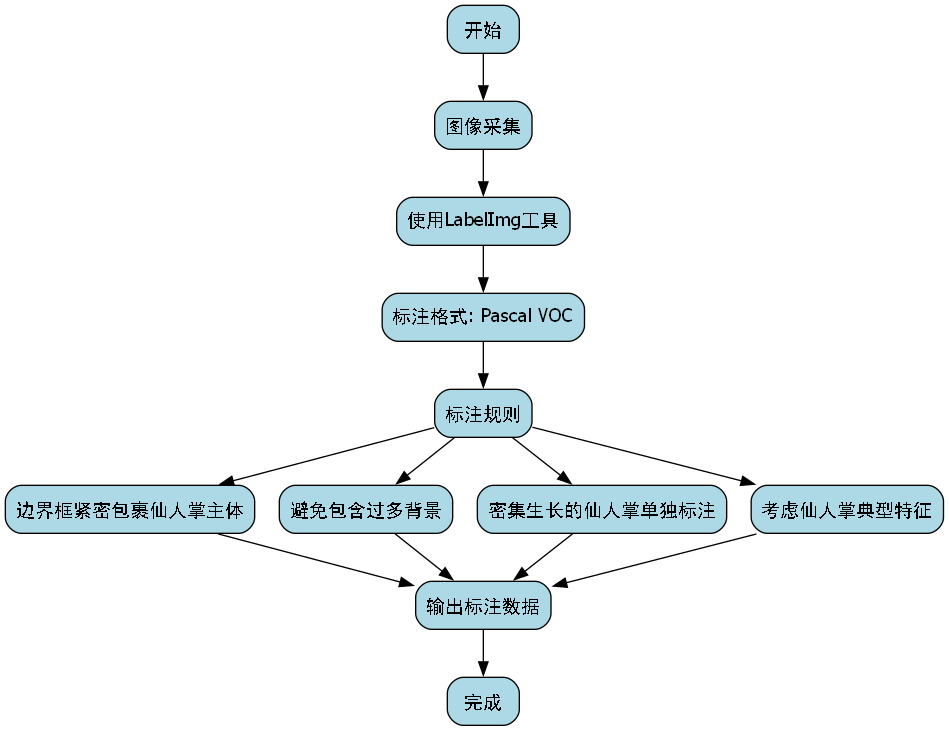 我们采集了Gymnocalycium和Mammillaria属共10个品种的图像,每个品种约200张,总计2000张图像。图像采集过程中考虑了不同光照条件、拍摄角度和背景环境,以增强模型的泛化能力。使用labelImg工具对图像进行标注,标注框精确覆盖仙人掌主体部分,并标注对应的品种类别。