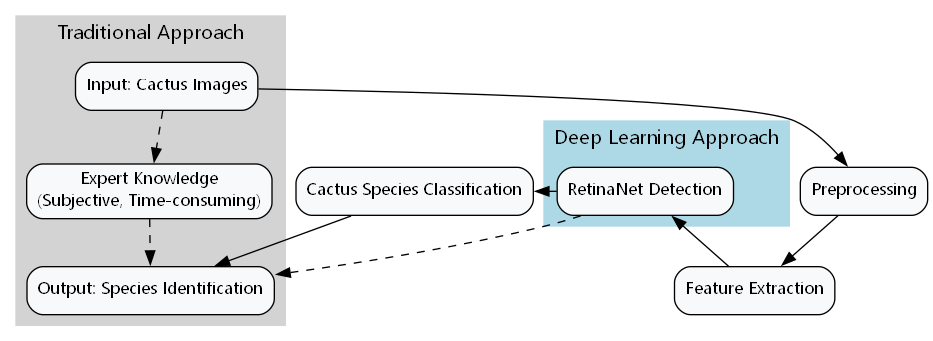 传统的仙人掌品种识别主要依赖植物学家的专业知识,存在主观性强、效率低下等问题。基于深度学习的计算机视觉方法能够自动学习仙人掌的视觉特征,实现高效准确的品种识别。RetinaNet作为一种高效的单阶段目标检测算法,在保持高精度的同时具有较快的推理速度,非常适合用于仙人掌品种识别这一实际应用场景。