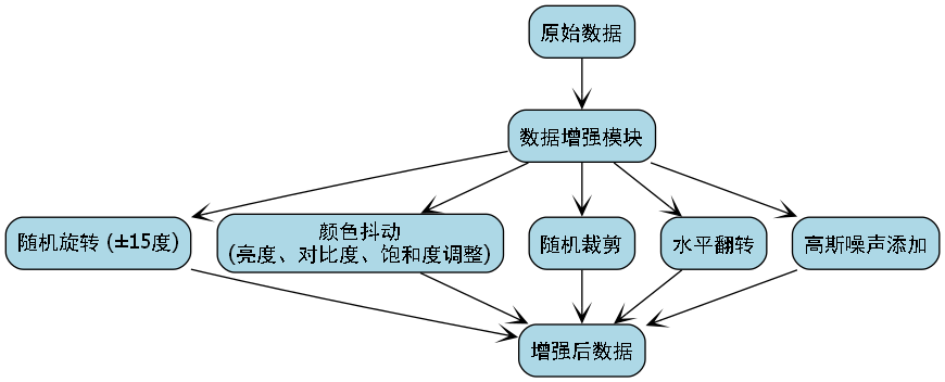 为了提高模型的泛化能力,我们可以对训练数据进行增强处理。常用的图像增强技术包括: