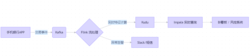 三、端到端实时分析流程示例(以银行反欺诈为例)
