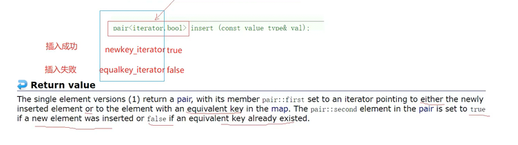 insert函数插入成功,则返回key所在的迭代器(刚刚插入的key所在的迭代器)(正常插入)