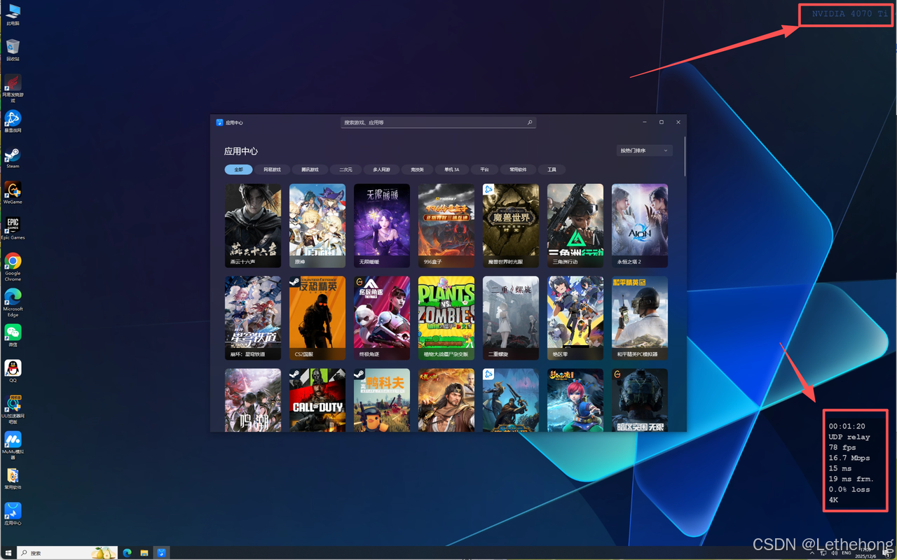 给大家测试了一下,3060云主机适合办公,跟轻薄本一样,不适合打游戏,还是给大家看看4070Ti云真机。4K的画质就是不一样哈,这就跟网吧里面的主机一样,没啥区别,有些网吧还是4060和4070混搭的。
