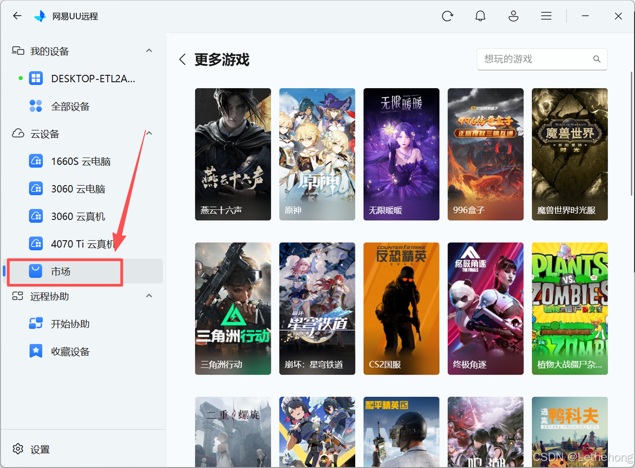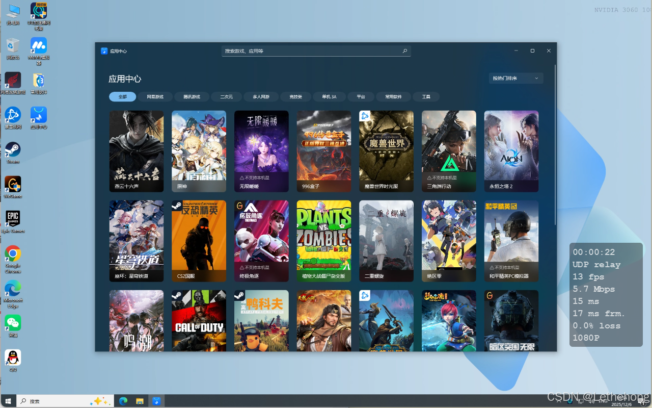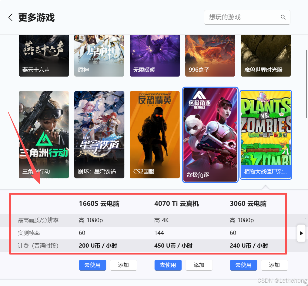 这里我选择的3060云电脑,给大家看看,主要还是看的是云电脑配置,进去之后一样可以选择多种游戏