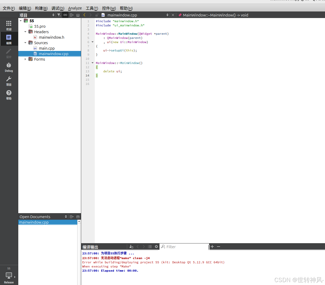 关键错误:无法启动进程"make" -f /home/yys/project/55/release/Makefile qmake_all