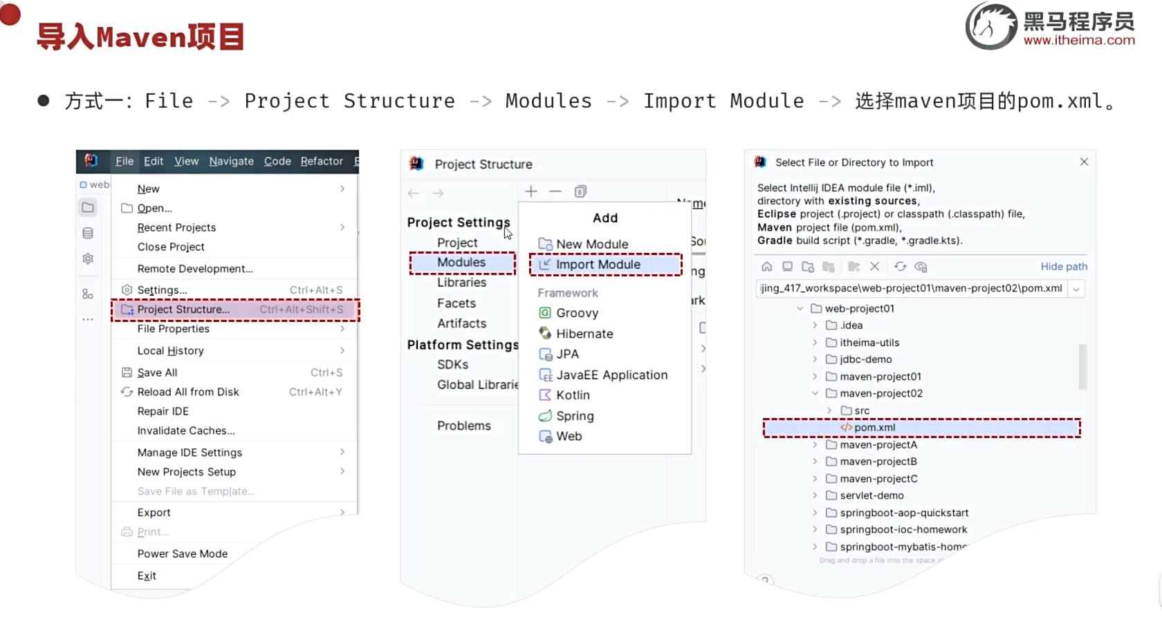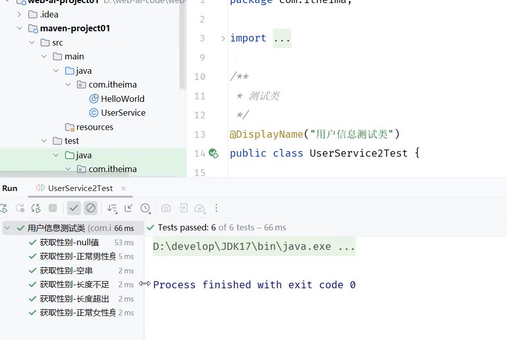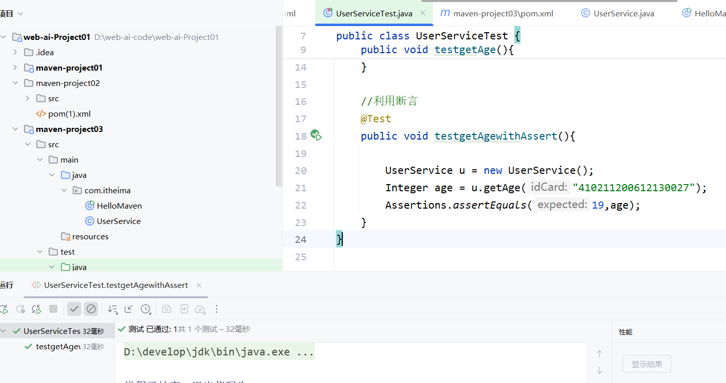 右击web-ai-project01项目,创建 module模块------maven-project01,之后在main的java文件夹下创建com.itheima.Test01 的java运行文件,这样Test01.java文件就可以运行了。