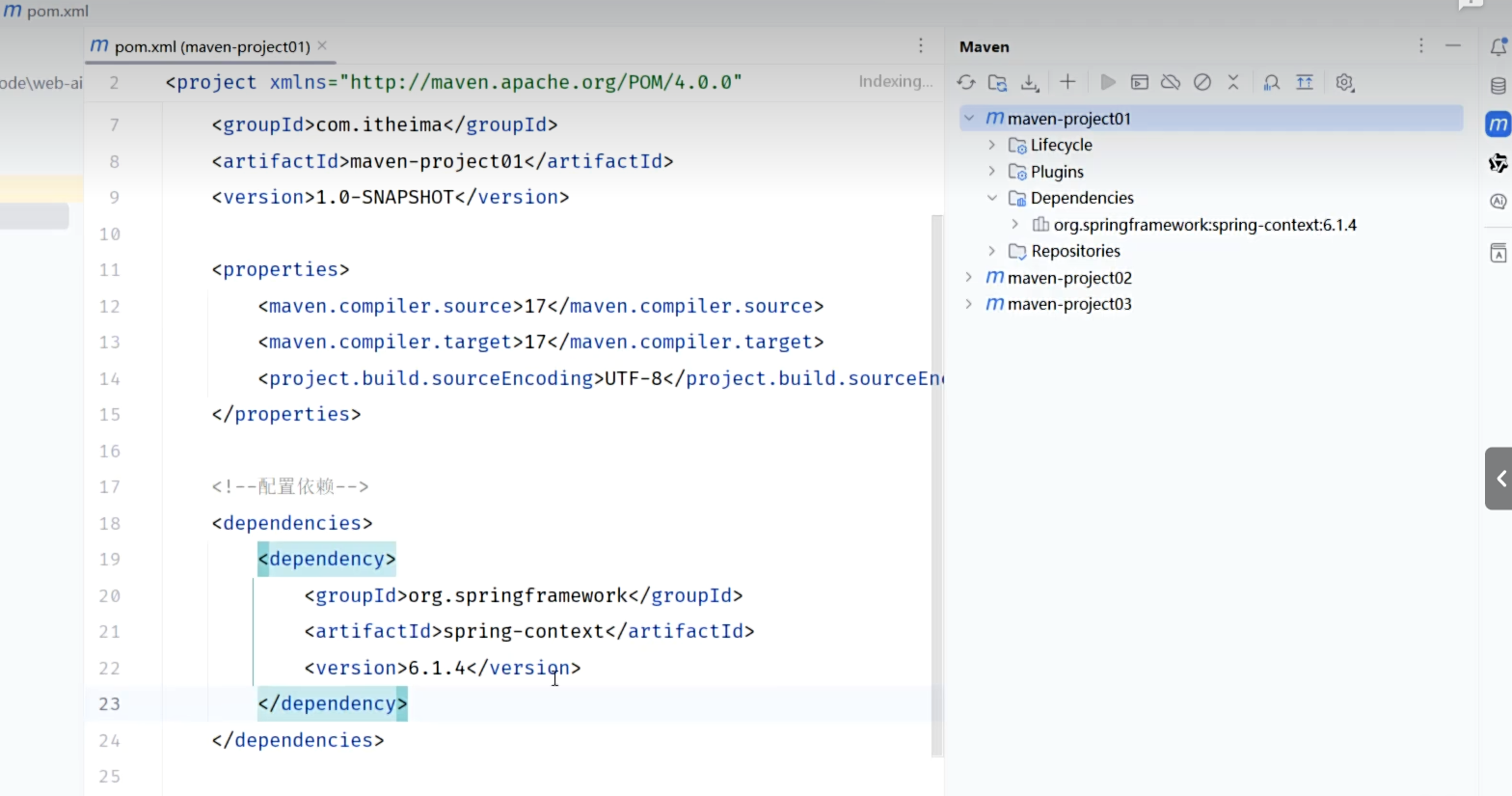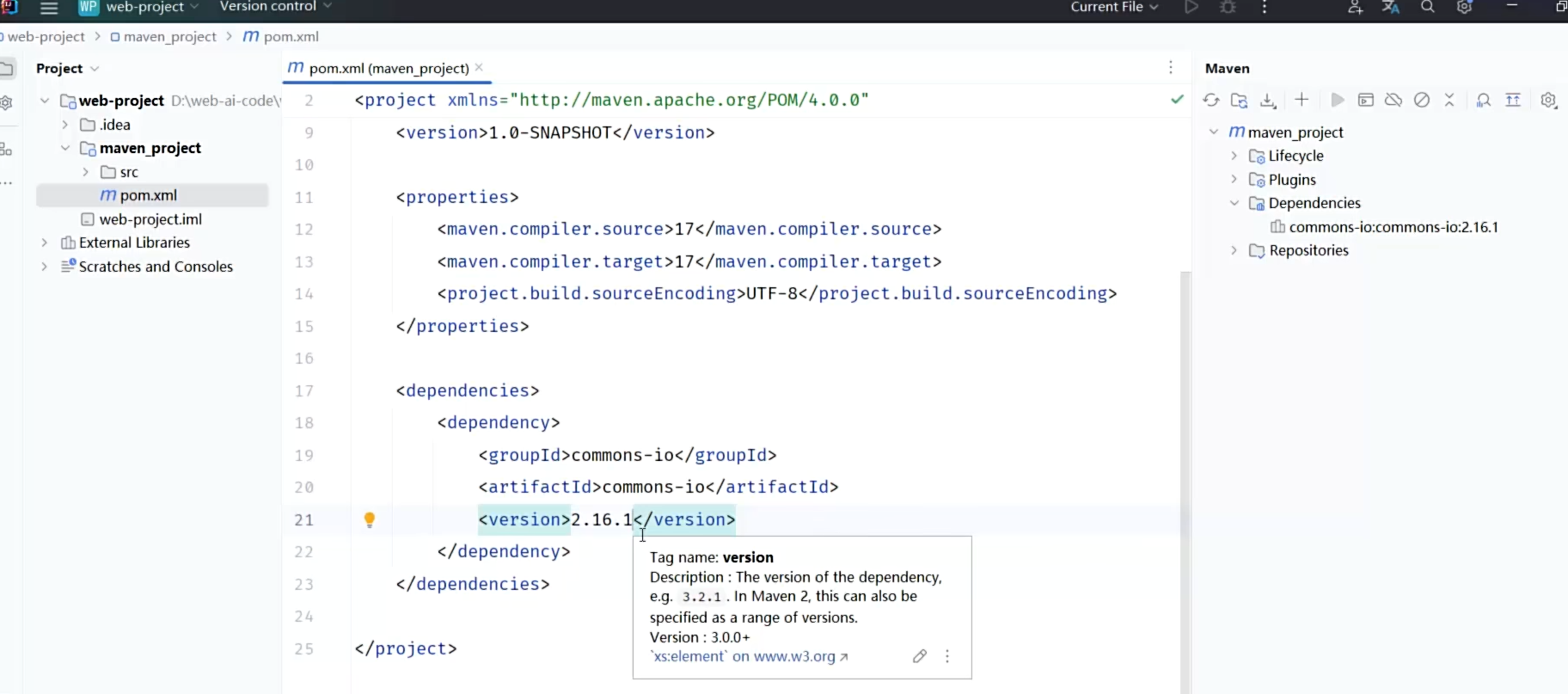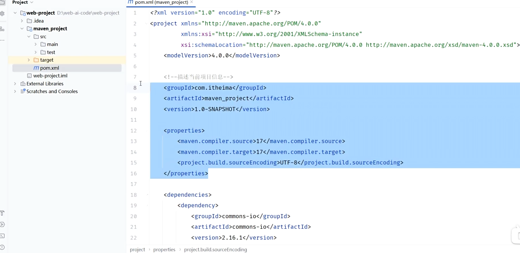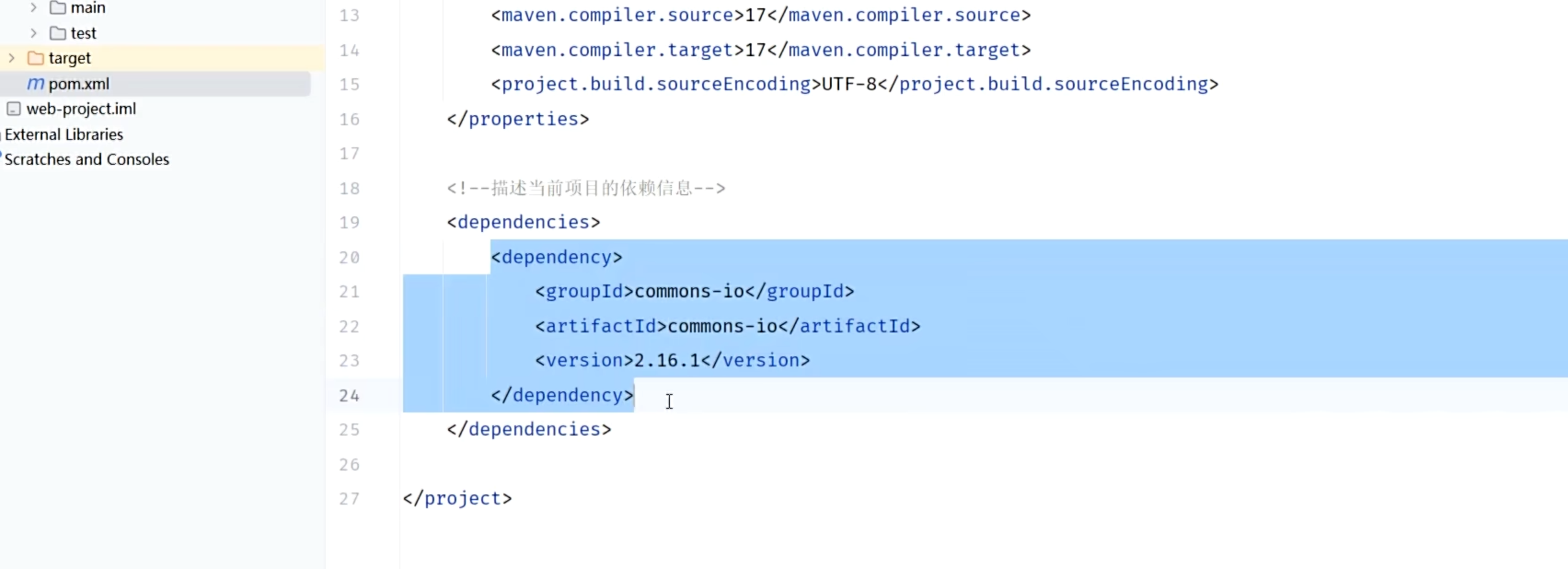 网页下面的代码直接粘贴复制到项目模块的pom.xml中