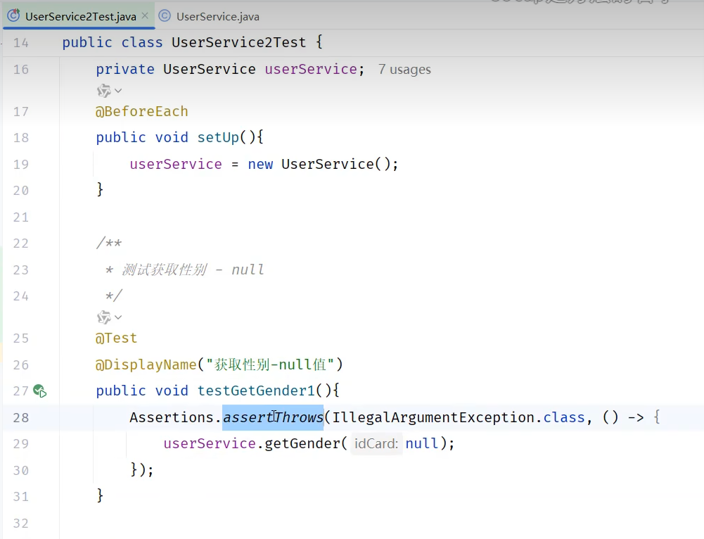 UserService是一个类,类中有很多方法,如getage和getgender等,