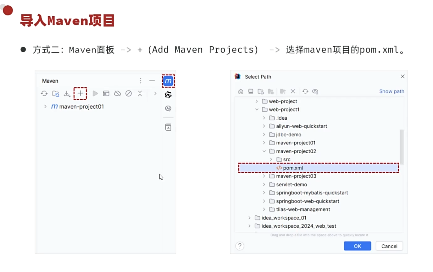 将坐标写入对应项目模块的 pom.xml 文件中--------刷新--------点击右侧 M 按钮查看是否下载依赖