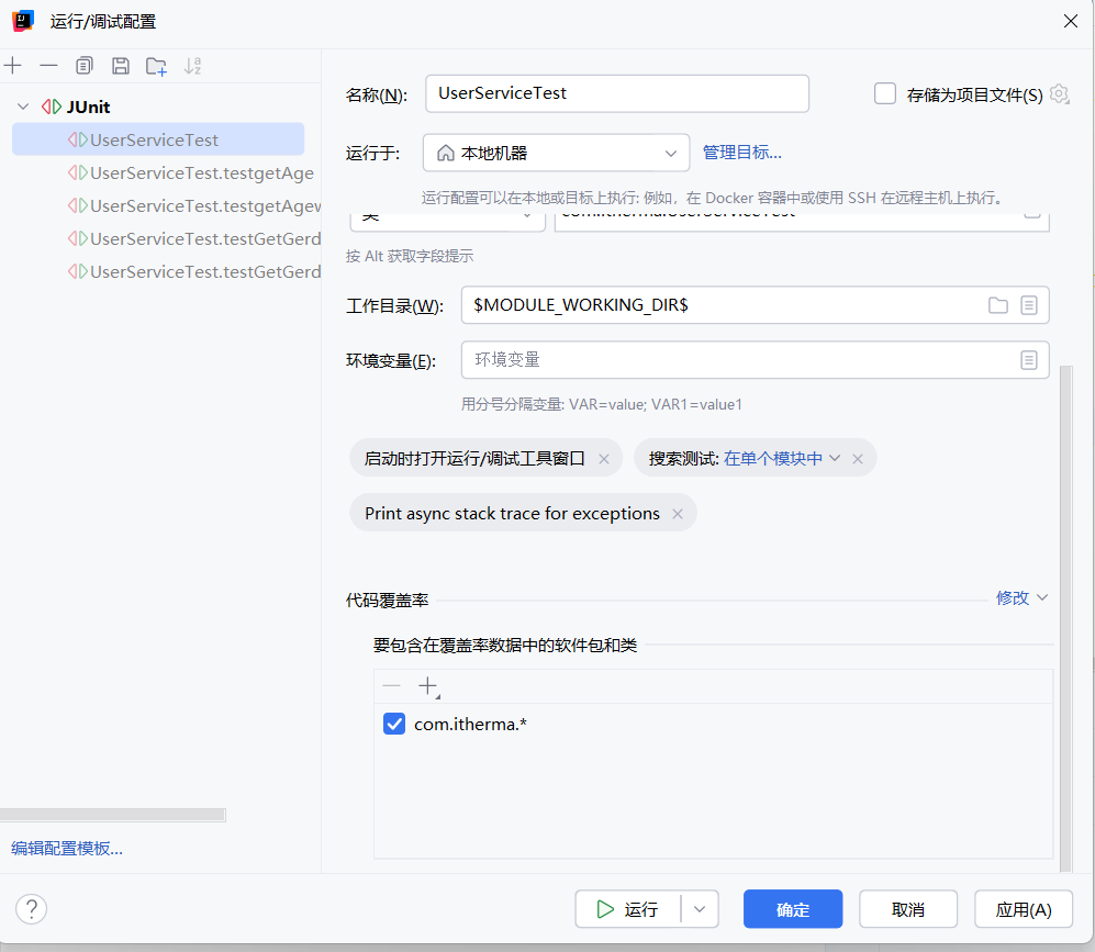 点击测试类左边运行按钮的第三个:使用覆盖率运行。