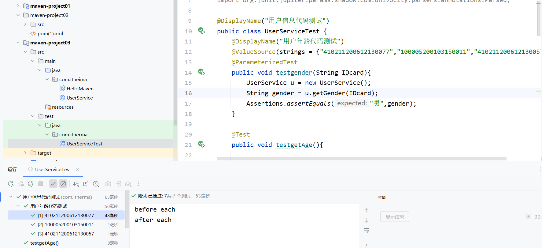 - 参数化测试是要在上面写明valuesource,在实际执行的时候,是会把strings中的元素一个一个带入到测试方法的形参中运行的。