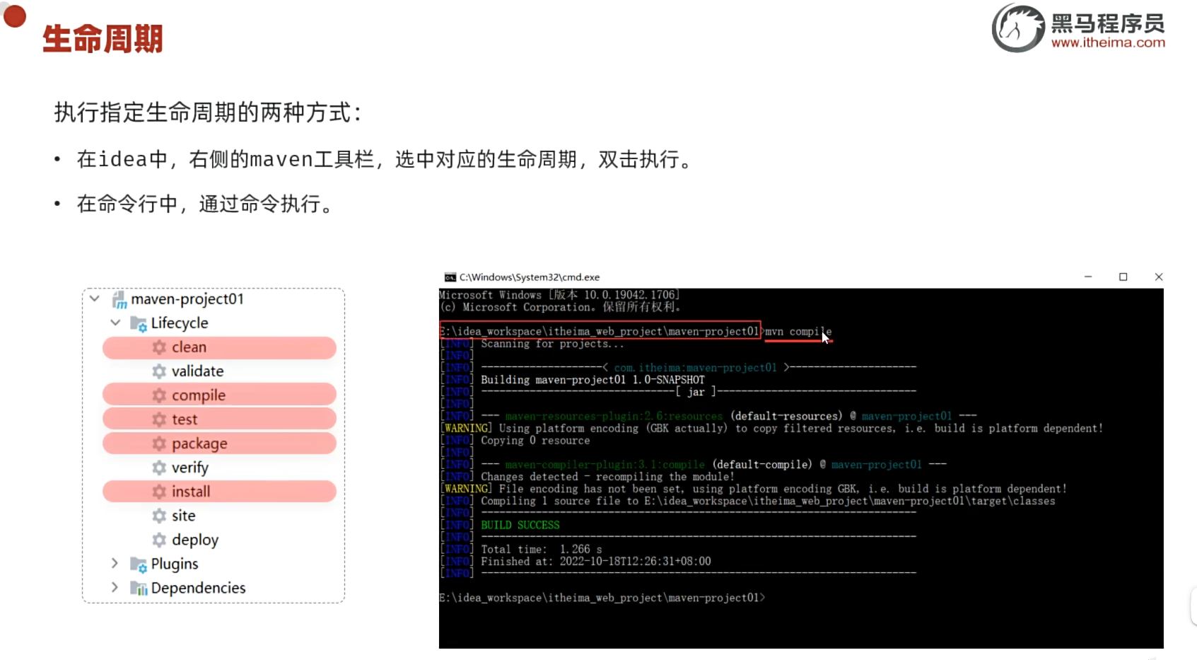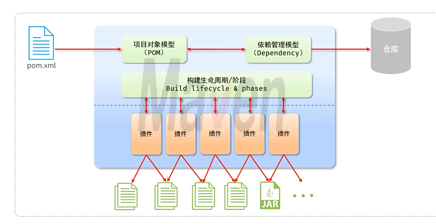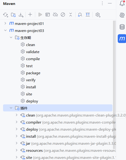 各个生命周期clean、test、compile都是通过底层的插件来完成的。