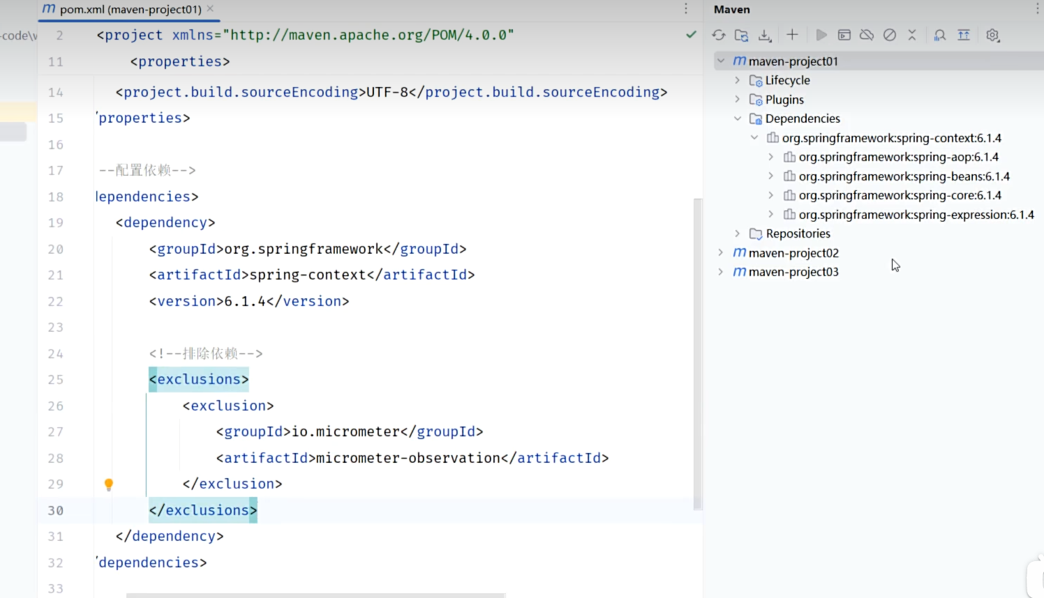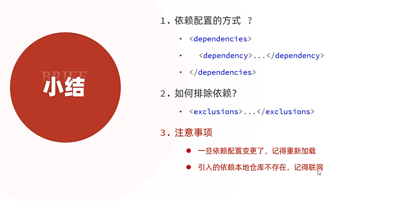 当依赖A 的某些依赖B,不需要存在于项目模块中时,就可以采用排除依赖exclusion: