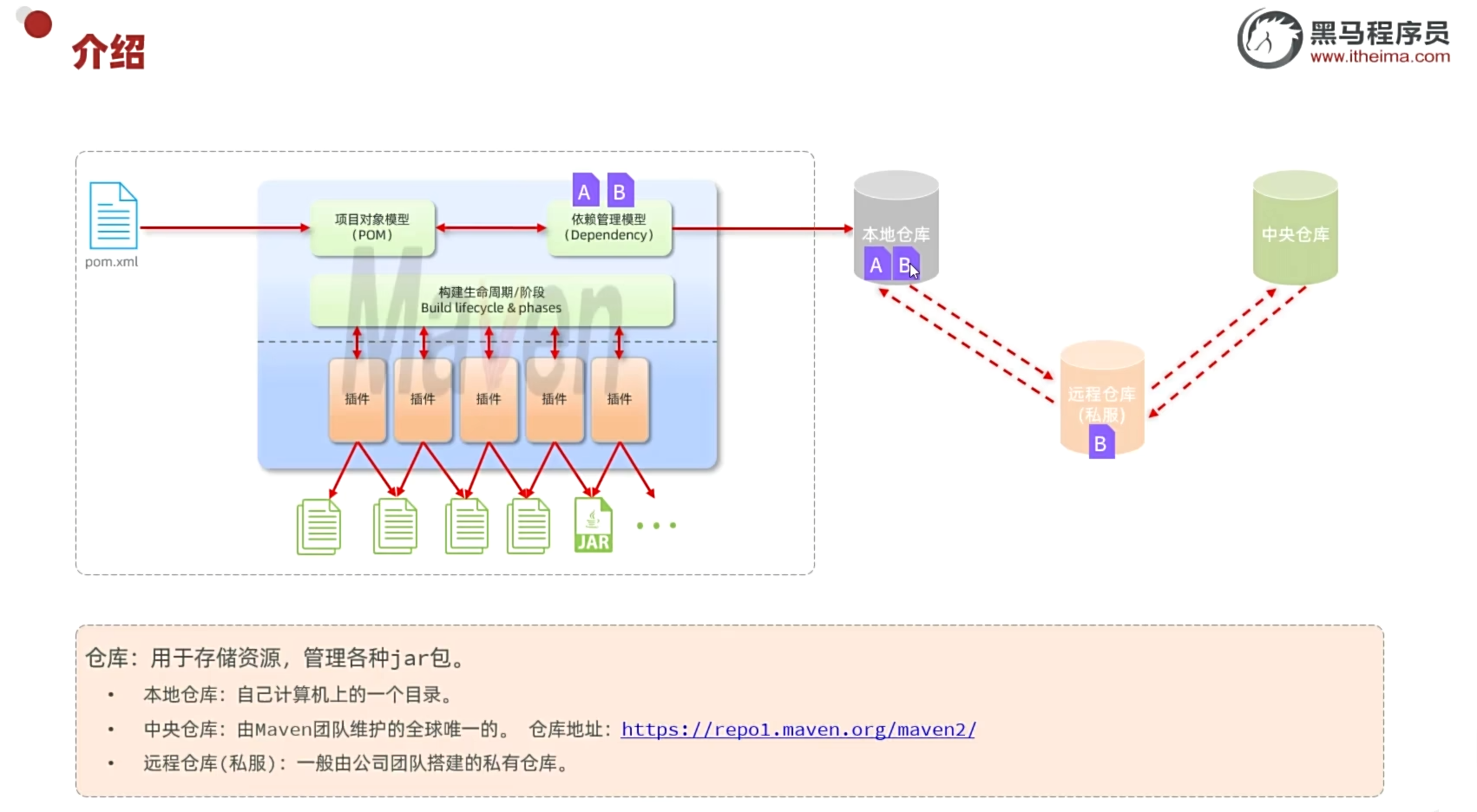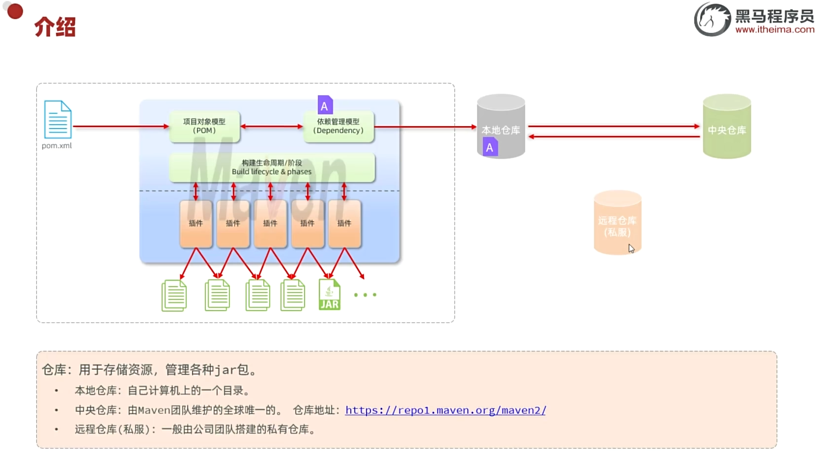 在Maven中,项目都是连接本地仓库这个文件夹来构成依赖的。