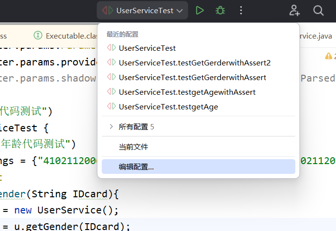 某个测试方法左边的箭头点击后-----------只这个测试方法运行----------只测试该方法