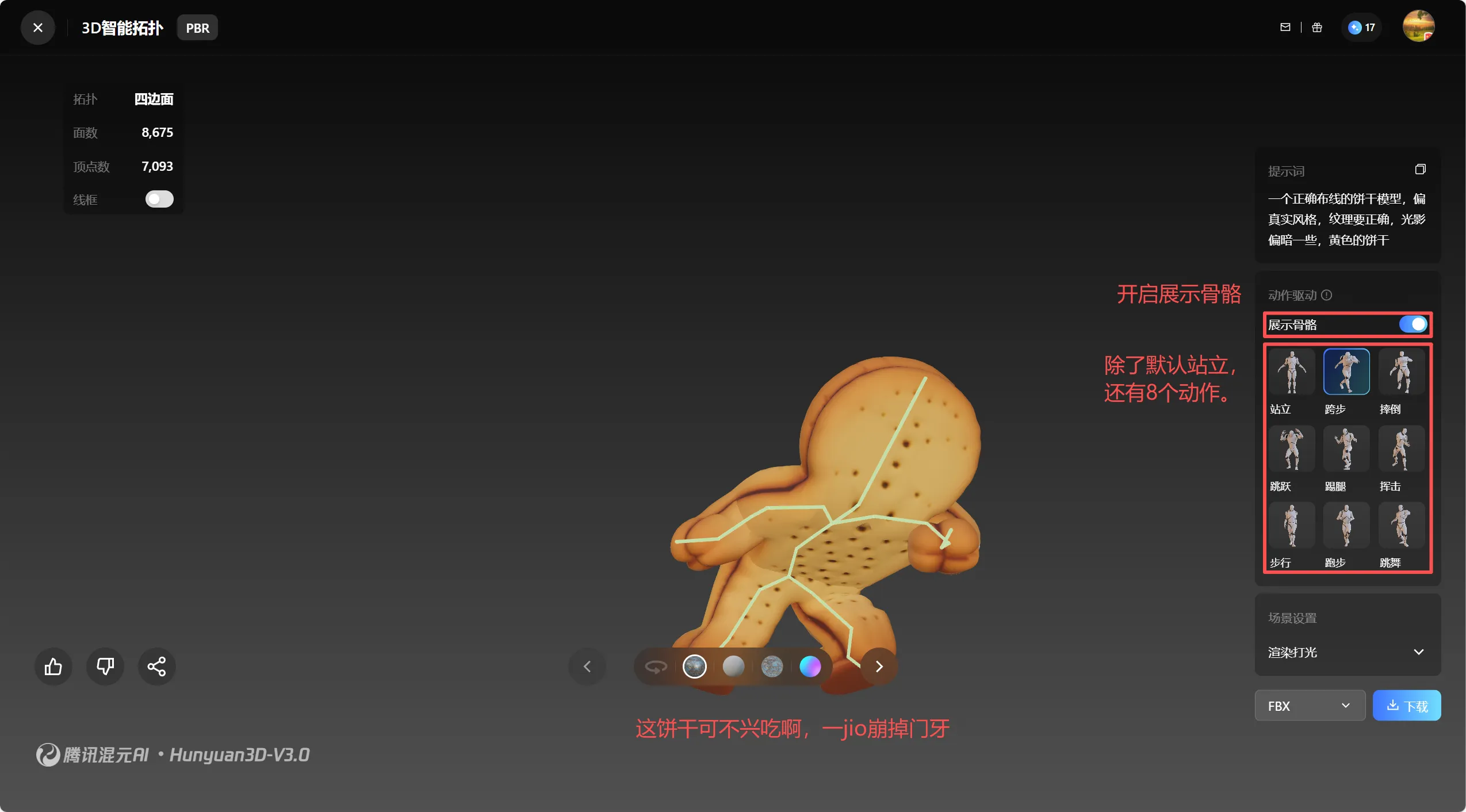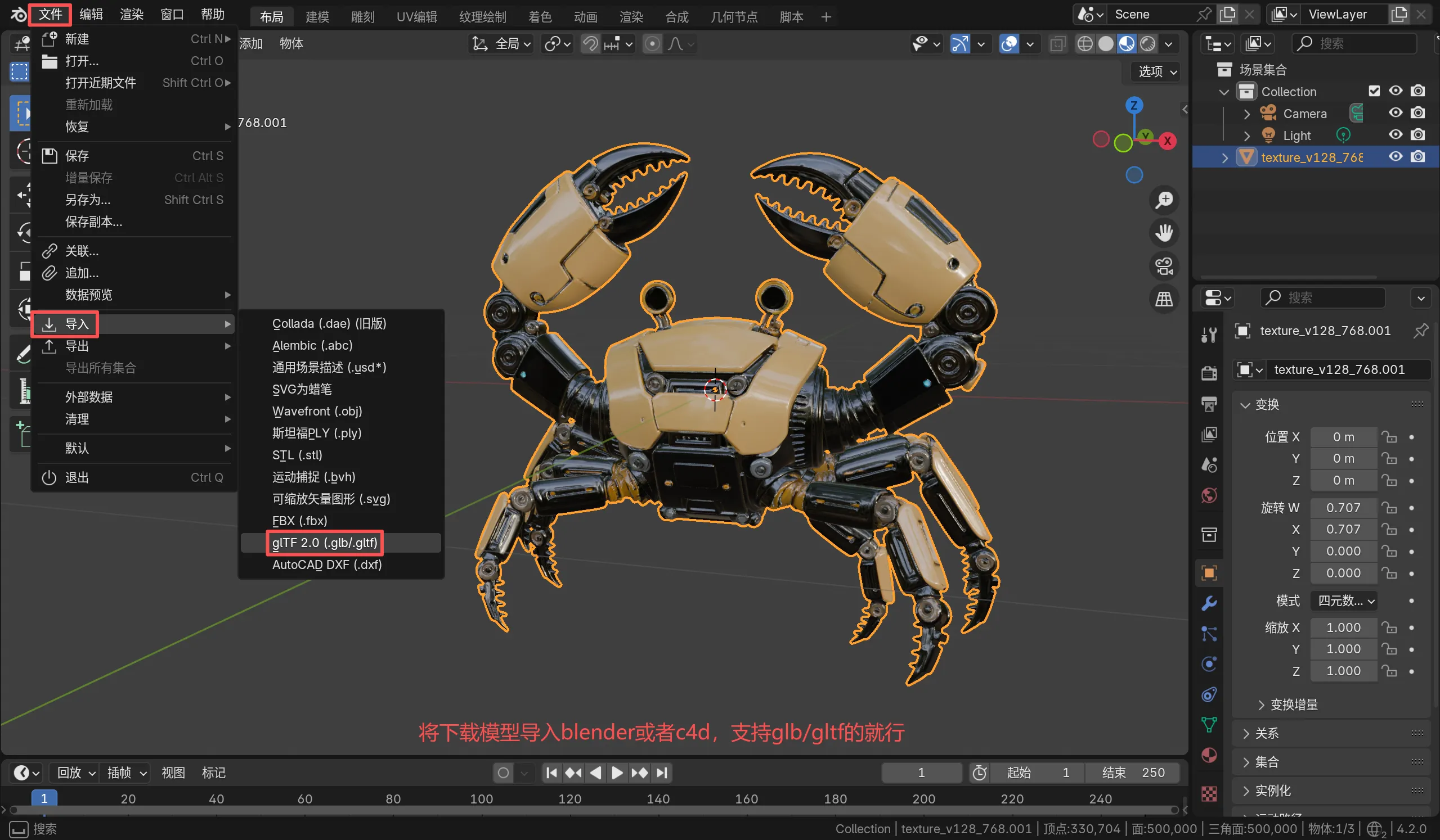 一般选择FBX格式进行下载,纹理动画和模型在一起。
