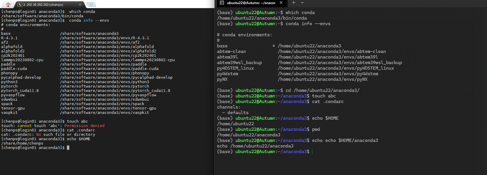 超算不配置的话,conda创建的虚拟环境会被放在/share这个文件夹下,而普通用户又没有/share的读写权限,所以会导致环境创建失败。这里参考本地wsl,新环境的路径放在$HOME主目录下: