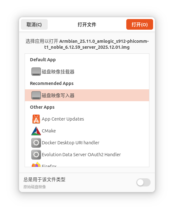 2、解压缩文件,得到Armbian_25.11.0_amlogic_s912-phicomm-t1_noble_6.12.59_server_2025.12.01.img