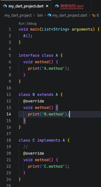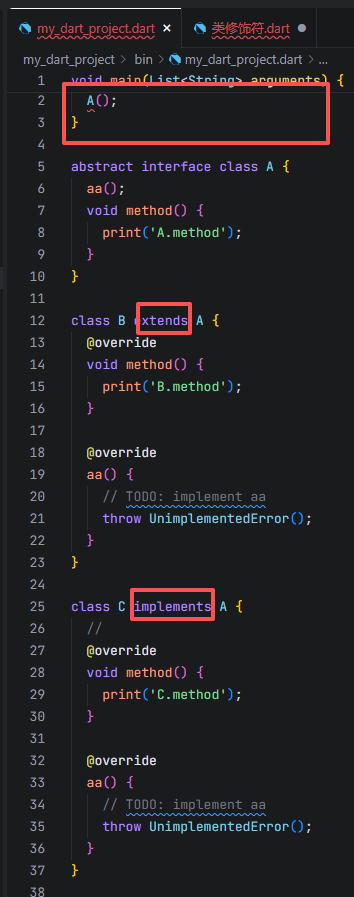 和java不同的是,class的使用相当灵活,class 也可以被实现,需要回顾的同学参考这里Android学Dart学习笔记第十五节 类