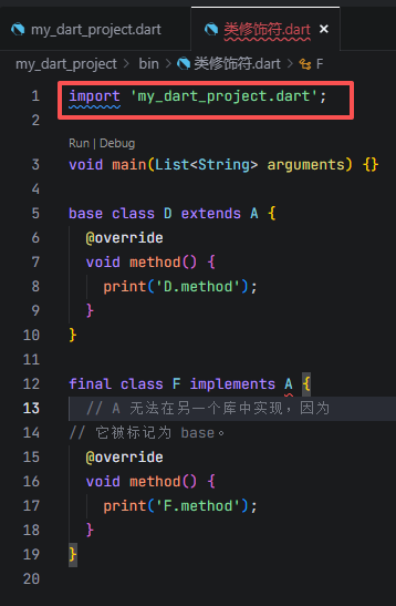 在同一个dart文件中base 修饰的类可以被继承和实现,但必须使用base, final, or sealed