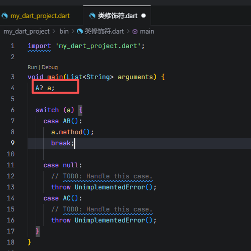 编译器知道任何可能的直接子类型,因为它们只能存在于同一个库中。这使得当 switch 语句的情况没有详尽地处理所有可能的子类型时,编译器能够向你发出警报。