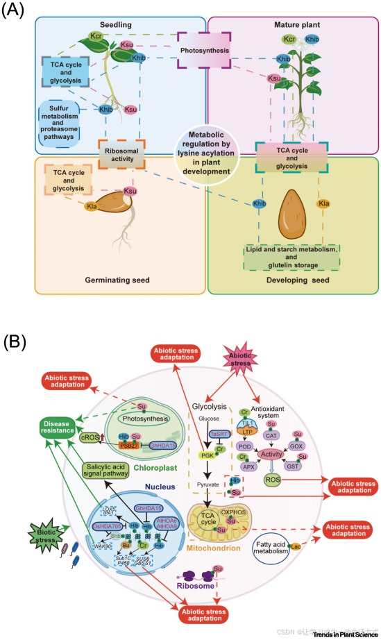 生物学功能:赖氨酸酰化修饰介导植物发育与逆境响应的关联