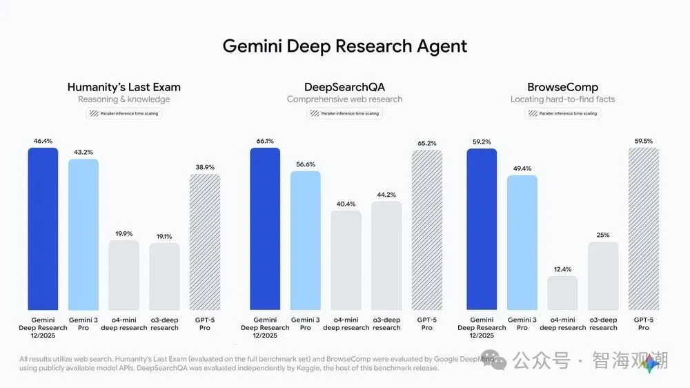 参阅:1. https://www.kaggle.com/benchmarks/google/dsqa/leaderboard2. https://techcrunch.com/2025/12/11/google-launched-its-deepest-ai-research-agent-yet-on-the-same-day-openai-dropped-gpt-5-2/3. https://openai.com/index/introducing-gpt-5-2/