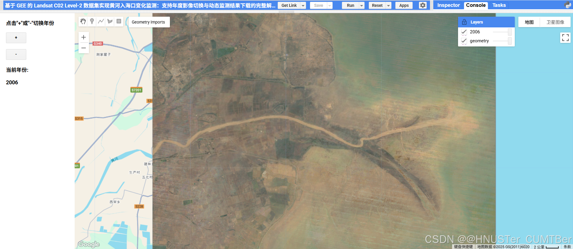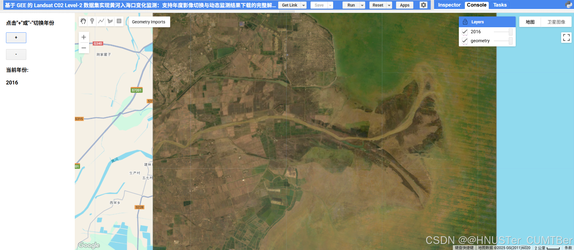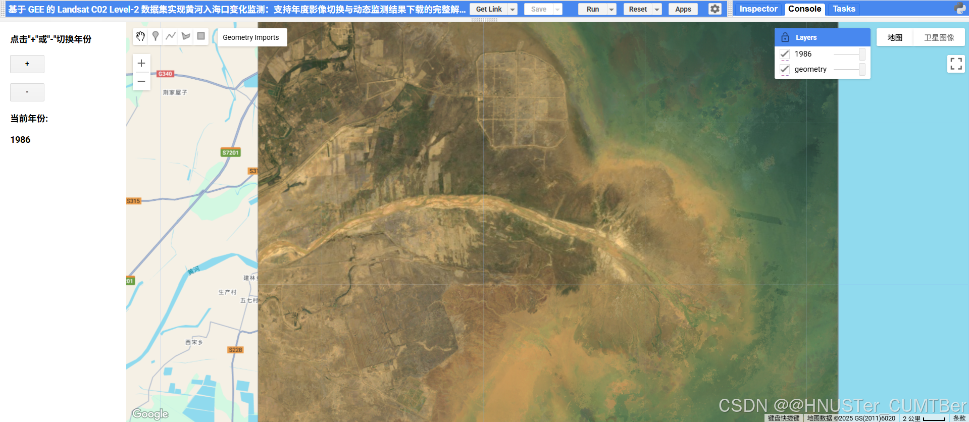 - 交互体验:提供可视化 UI 面板,支持年份快速切换,便于直观对比不同时期黄河入海口的变化。