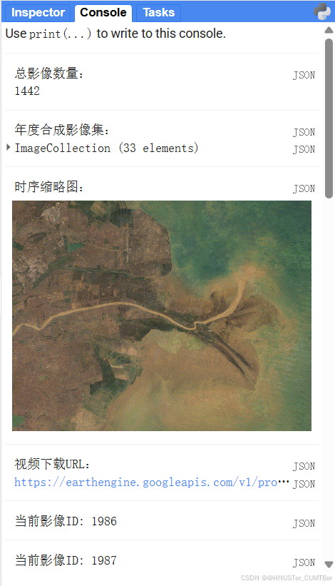 sDate和eDate。 - 下载限制:视频下载 URL 的有效期有限,需在生成后及时下载;若影像数量过多,视频生成可能失败,可减少年份范围后重试。