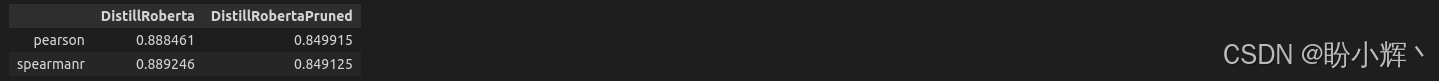"DistillRobertaPruned":stsb_metric.compute(predictions=distilroberta_results_p, references=references)