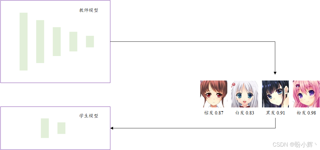 知识蒸馏是指将大型模型(教师模型)的知识迁移到小型模型(学生模型)的过程。教师模型通常规模更大、性能更强,而学生模型则更小、更轻量。这种技术广泛应用于计算机视觉及自然语言处理 (Natural Language Processing, NLP) 领域。下图展示了一个典型的蒸馏实现过程: