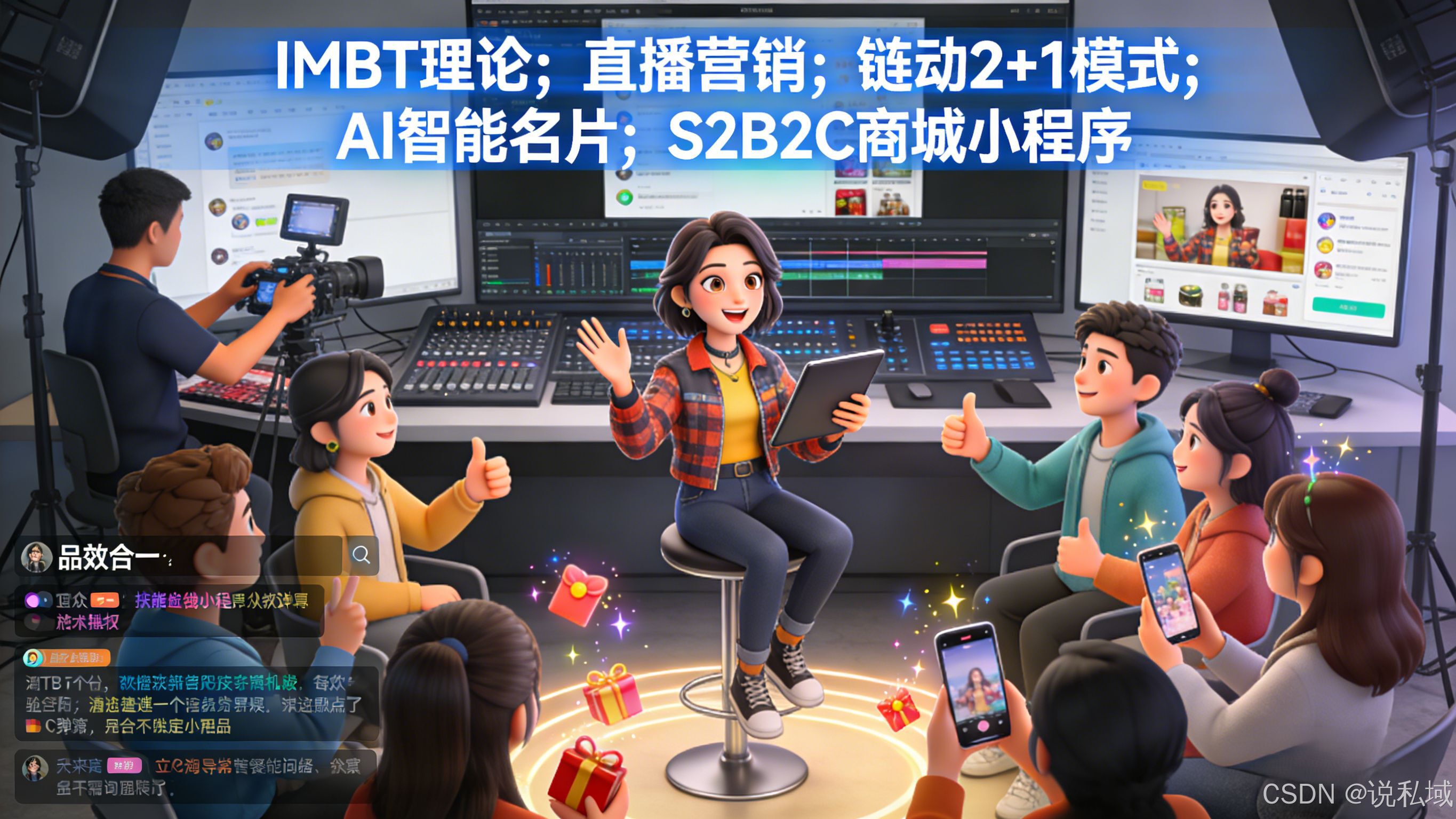 关键词:直播营销;链动2+1模式;AI智能名片;S2B2C商城小程序;IMBT理论