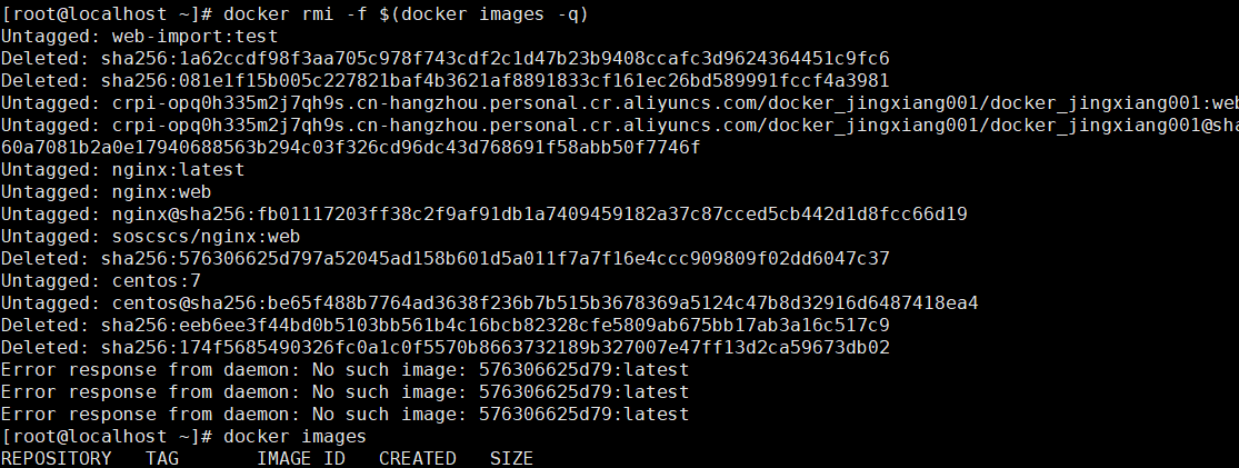 删除所有镜像: