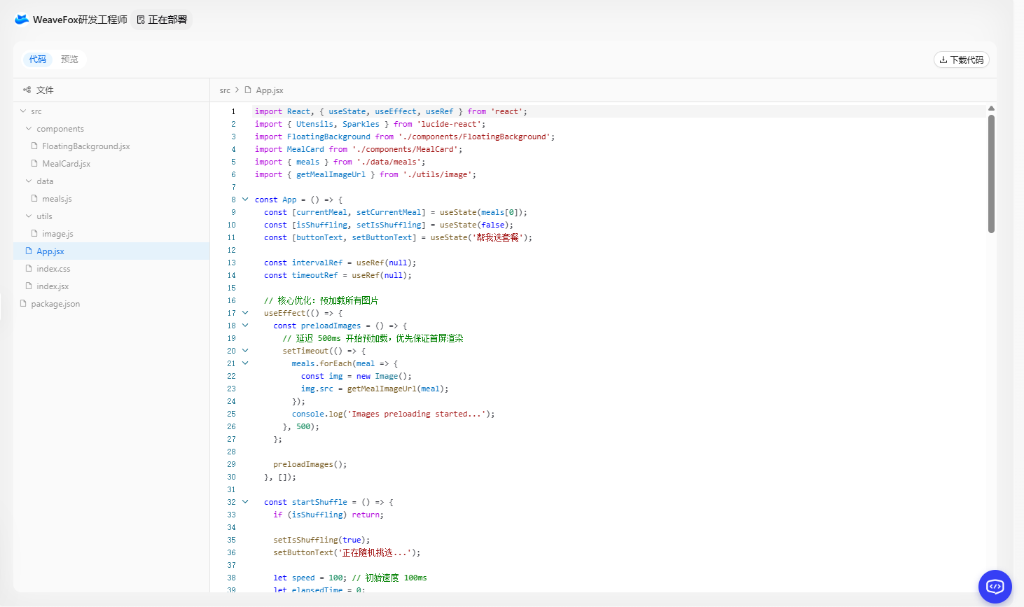 在做这个应用的过程中,也是经过了好几次打磨。第一次的提示词里,我有一个词是这么写的,菜单随机滚动,出来的效果是下面这样的,类似一种下拉式随机滚动,并不是我想要的效果。