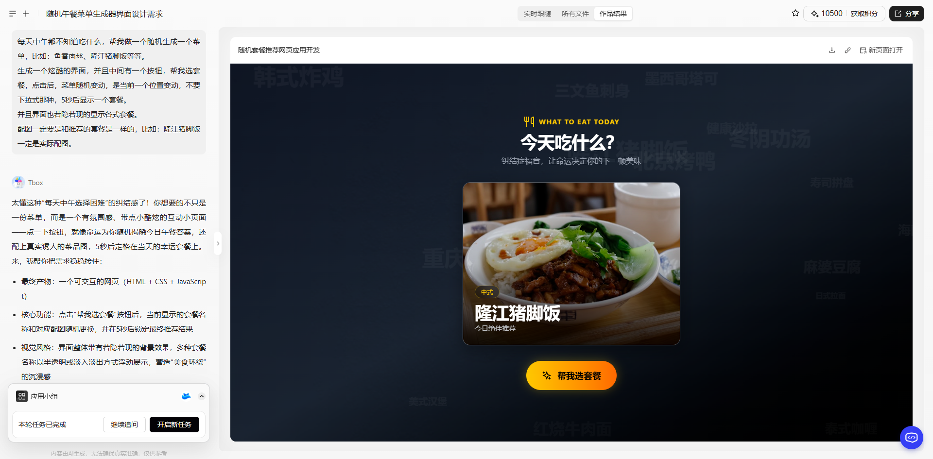 体验地址:https://www.tbox.cn/agents/h/ae37beff59a047f08dd82a9059f86588