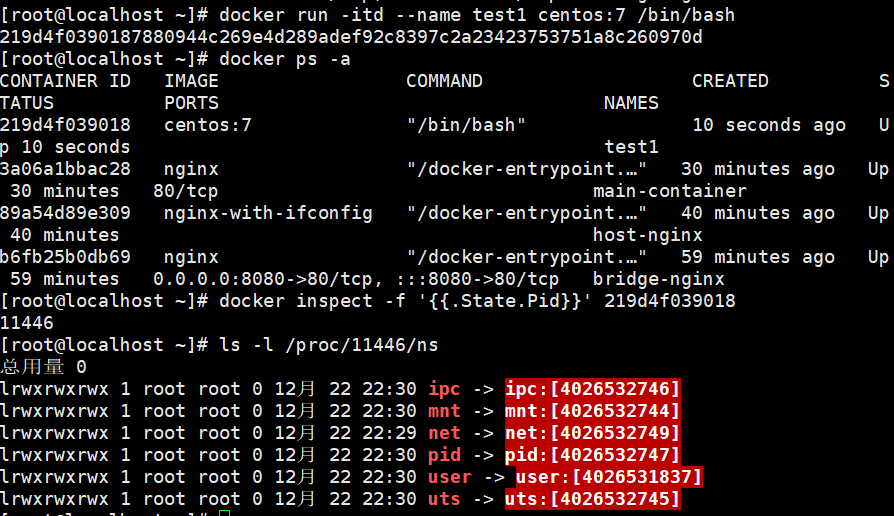 - 网络命名空间:host 模式共享宿主机的,container 模式共享指定容器的,而非宿主机;