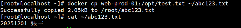 * `docker cp web-prod-01:/opt/test.txt ~/abc123.txt`