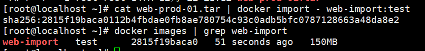 * `cat web-prod-01.tar | docker import - web-import:test`