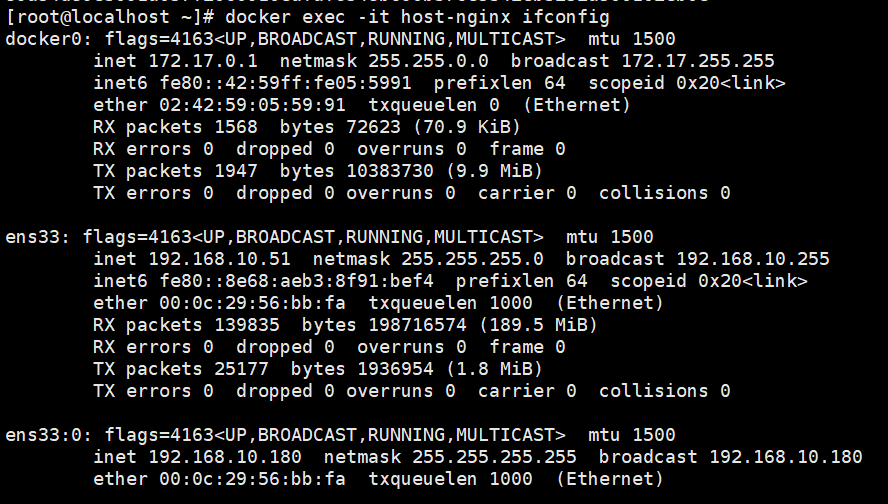 1、Docker host 网络模式下,容器没有独立 IP 地址。