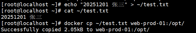 * `docker cp ~/test.txt web-prod-01:/opt/`
