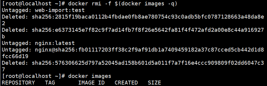 删除所有镜像:`docker rmi -f $(docker images -q)`