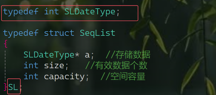 然后是顺序表的重命名,这里将顺序表重命名为SL,后续使用起来更加方便,看起来也会更加清晰。